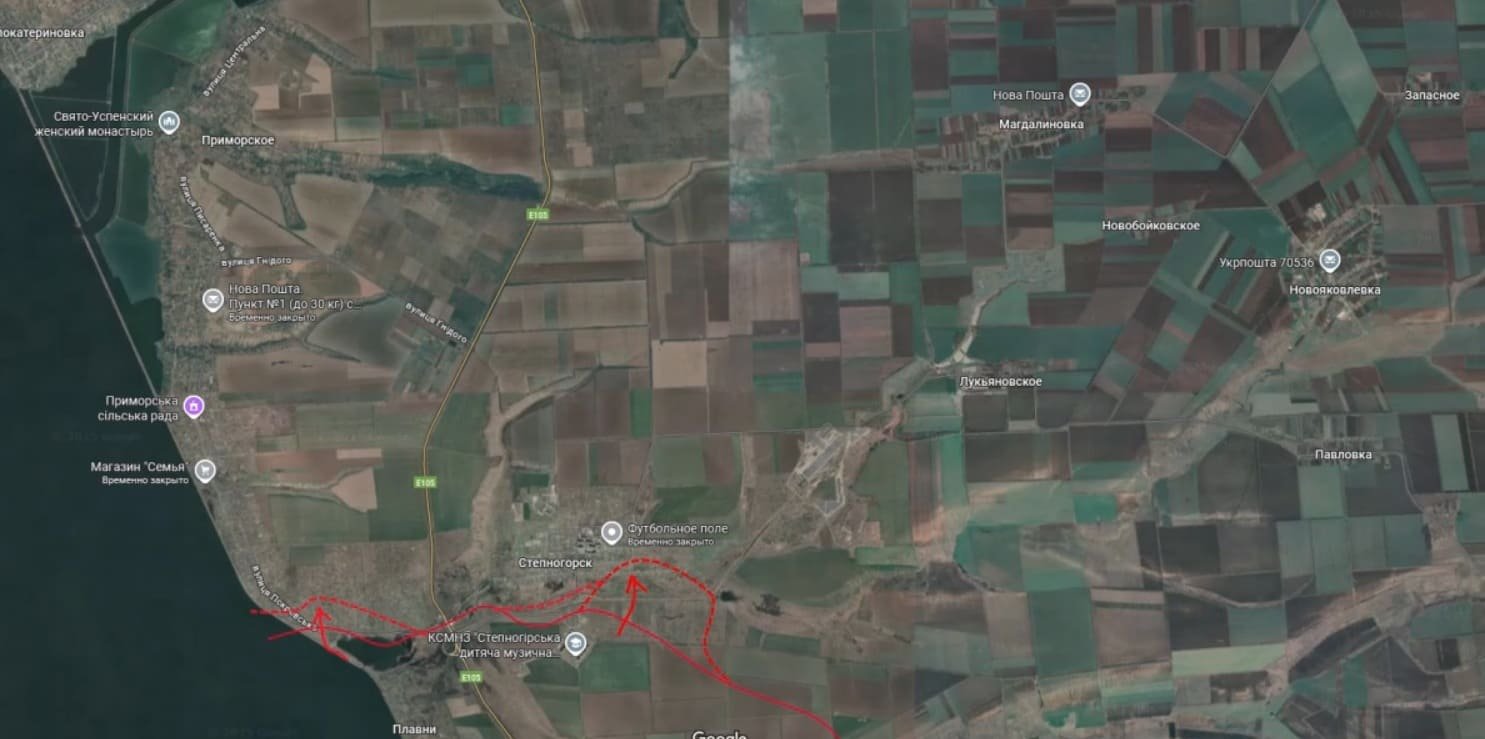 Российские бойцы выбивают украинских военнослужащих из центра поселка Степногорск в Запорожской области, сообщил также Подоляка.