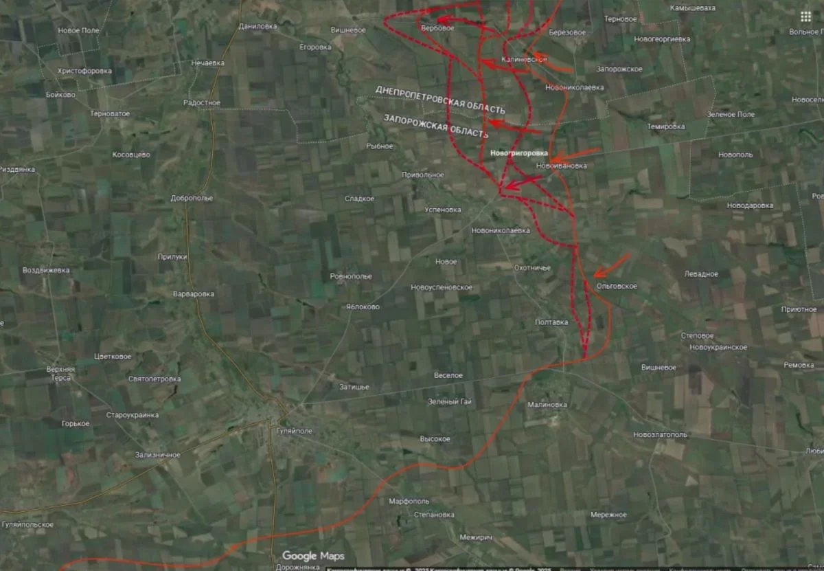 Российские войска широким фронтом оказывают давление на оборонительную линию противника, проходящую через населённые пункты Егоровка, Рыбное, Привольное, Успеновка, Новониколаевка, Охотничье и Полтавка. Потеря этой линии станет для ВСУ последним серьёзным рубежом перед Гуляйполем с севера.