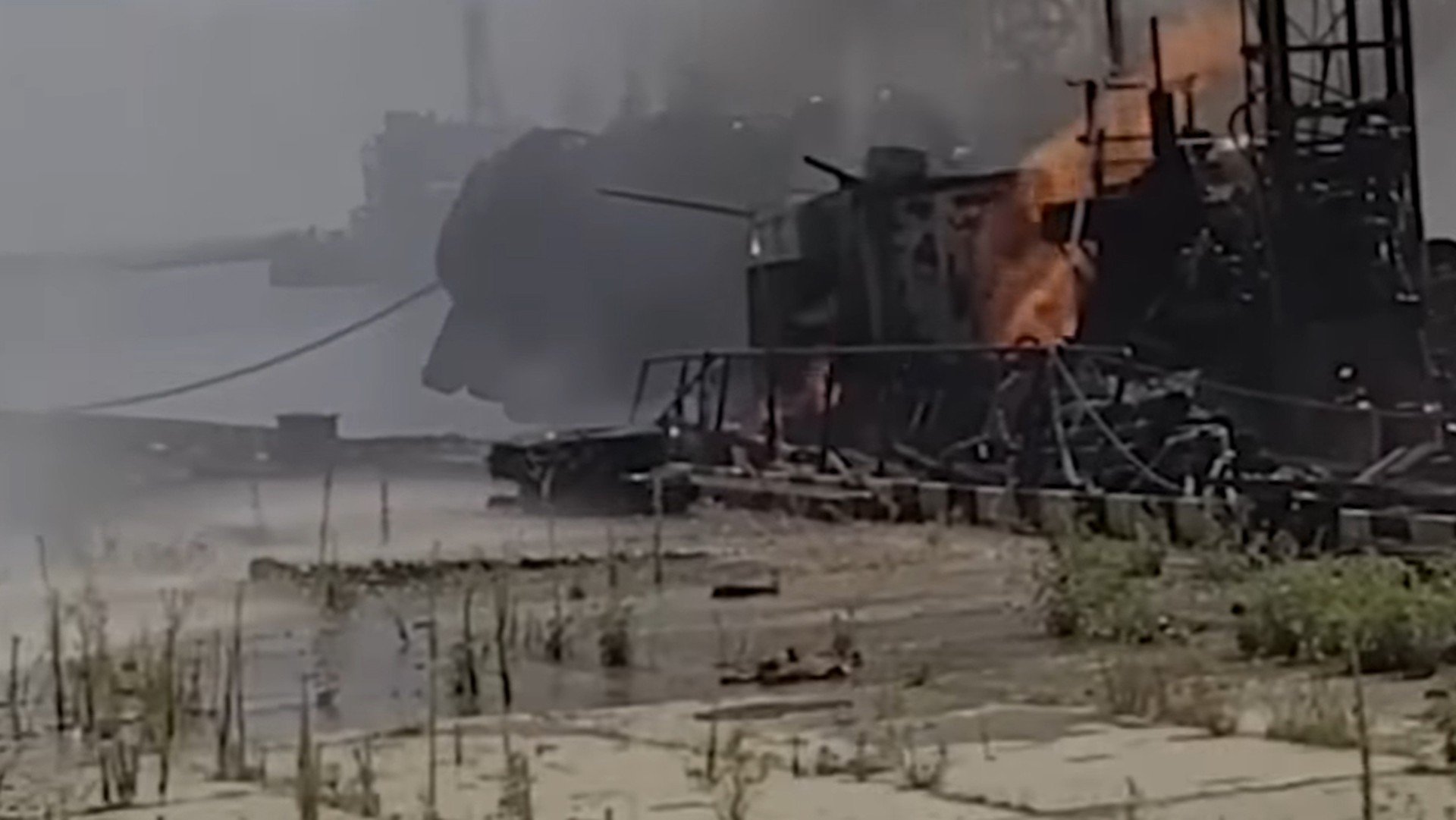 Опубликовано и видео, снятое очевидцами. В кадр попали момент атаки и последствия: яркие вспышки и густой дым.