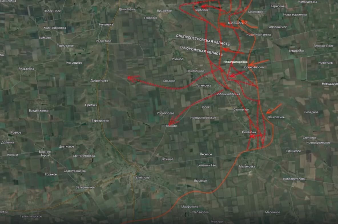 В Запорожской области войскам из России удалось войти в населенный пункт Успеновка, расположенный неподалеку от Гуляйполя. С этой информацией выступил военный блогер Юрий Подоляка в своем видеообзоре, размещенном в его