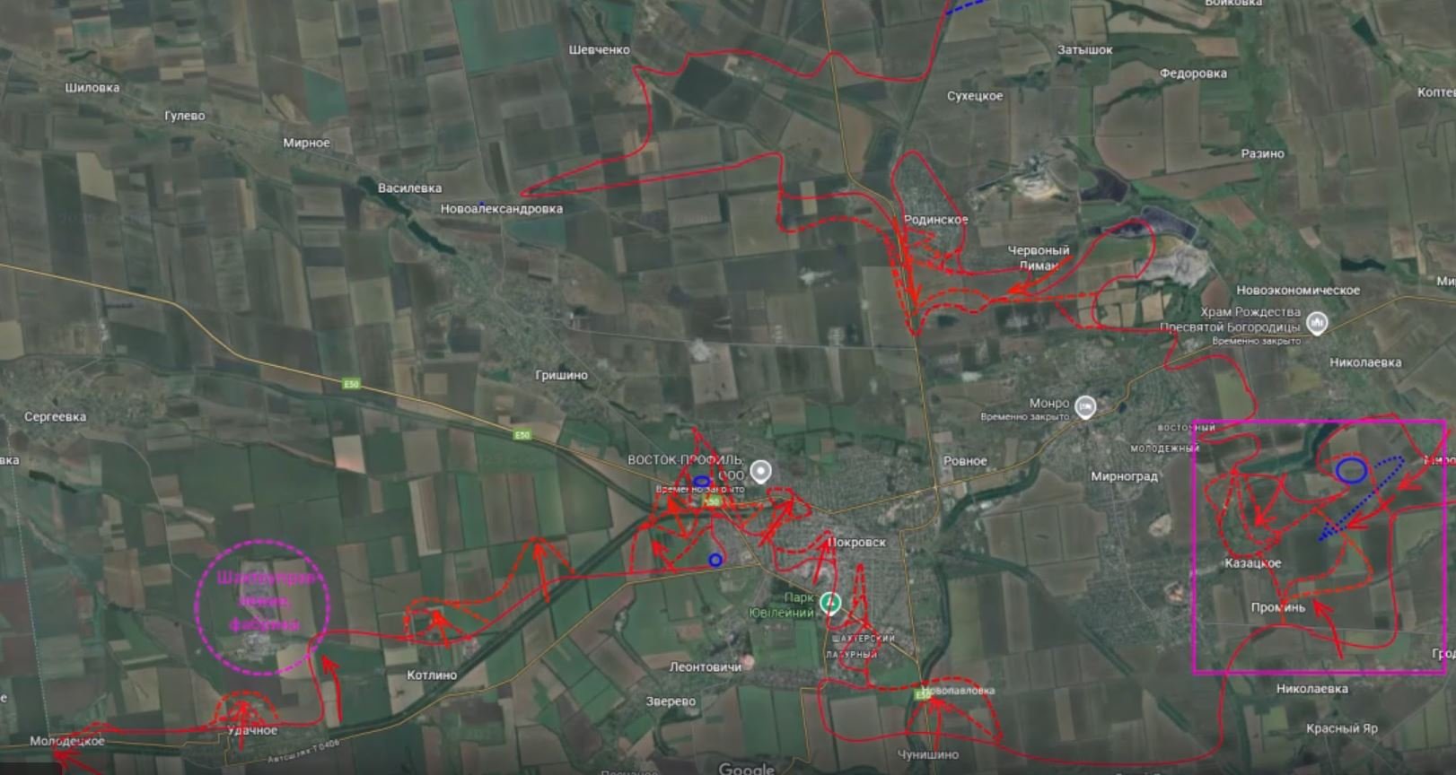 В микрорайонах Шахтерский и Лазурный сопротивление ВСУ сломлено, а в северо-западной промзоне Мирнограда территория почти полностью освобождена. Ожидается формирование кольца окружения вокруг Покровско-Мирноградской группировки противника.