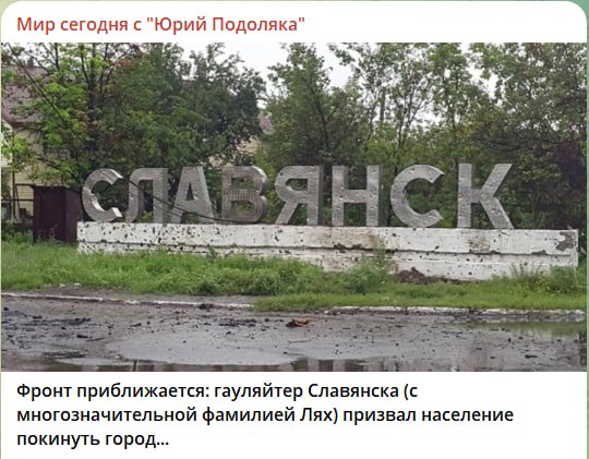 "Фронт приближается, и освобождение "колыбели Русской весны" в Донбассе (как и всей территории ДНР) неумолимо приближается..." - заявил Подоляка, комментируя призыв главы ВГА Славянска срочно эвакуироваться.