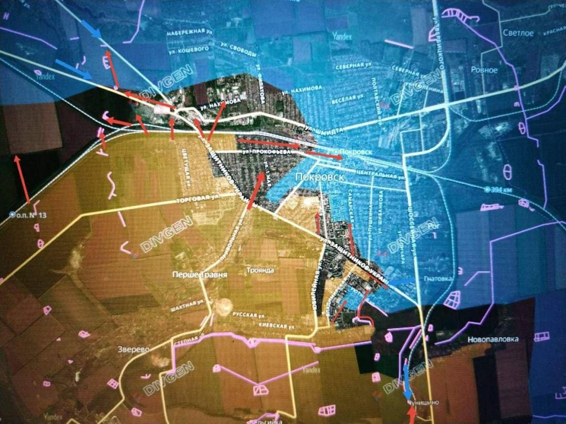 На Покровском фронте есть продвижение западнее Котляровки и Муравки по направлению к Новопавловке. ВС РФ практически выбили противника из Молодецкого. Идут бои в районе шахт севернее Удачного и севернее Котлино. Противник контратакует в районе Гришино, в попытках удержать последнюю трассу снабжения Покровско-Мирноградской агломерации. В самом Покровске ВС РФ продвигаются вдоль ж/д от вокзала на восток, разрезая оборону противника на две части. МО РФ сообщило об освобождении с. Балаган и продвижении наших частей в восточной части Мирнограда. На Добропольском выступе ВС РФ с трёх сторон штурмуют Шахово, постепенно вытесняя вражеские силы. На западной стороне выступа продолжаются тяжёлые бои в районе Нового Шахово, Никаноровки и Дорожного. Противник там постоянно контратакует, часть сёл находится в серой зоне, сообщает Олег Царёв в