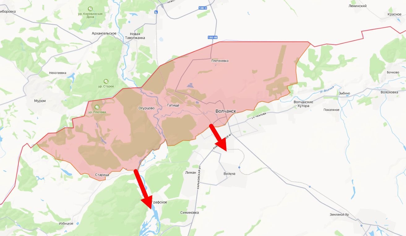 На Купянском направлении ВСУ контратакуют в районе Радьковки, и это замедлило продвижение ВС РФ в Купянске, но тактические успехи на этом участке фронта есть. На плацдарме в районе Хатнего и Мелового ВС РФ заняли несколько лесополос и продвинулись до 600 м.