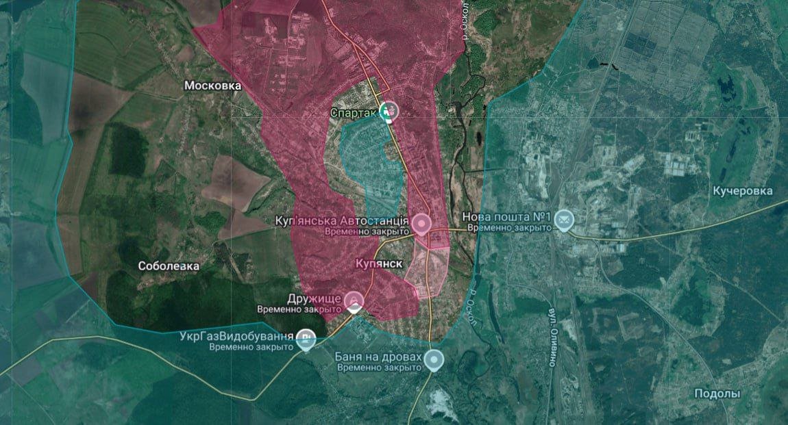 На Купянском фронте ВС РФ контролируют все переправы через Оскол в районе Купянска. Южнее идут бои за Куриловку на левом берегу, у станции Купянск-Узловой. На севере направления ВС РФ продвигаются в районе Каменки. Расширена зона контроля у Бологовки.