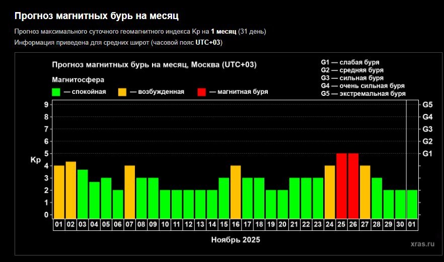 Последний месяц осени для метеозависимых станет относительно спокойным. Однако в отдельные периоды возмущения магнитосферы все же будут происходить.