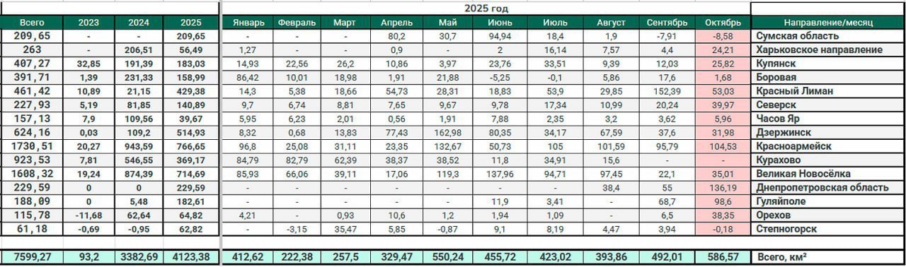 Вместе с этим Подоляка проинформировал и о других успехах российских бойцов. Согласно его свежей сводке, в октябре ВС РФ освободили более 500 кв км территории - в ноябре цифра должна быть много больше.