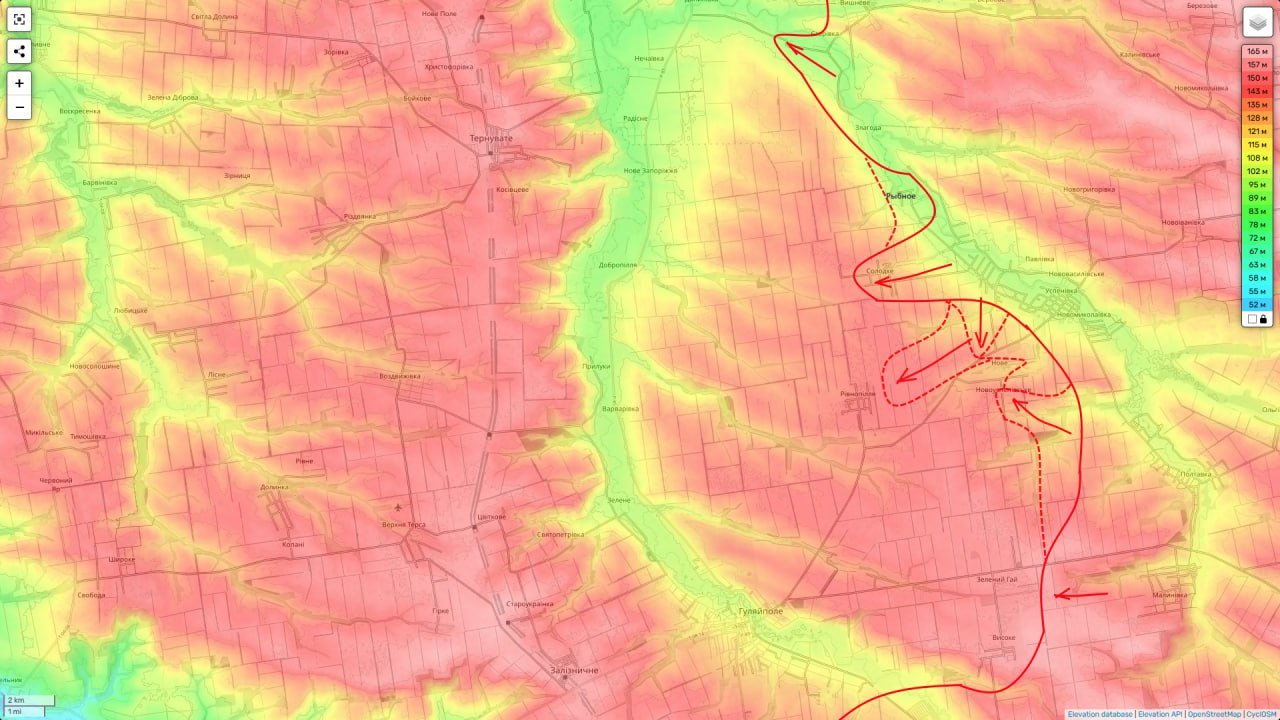 Украинские мониторинговые каналы сообщают, что российские части группировки "Восток", после полной зачистки оборонительной линии по реке Янчур, продолжают буквально рвать в клочья оборону ВСУ далее на юго-запад (по направлению на Гуляйполе).