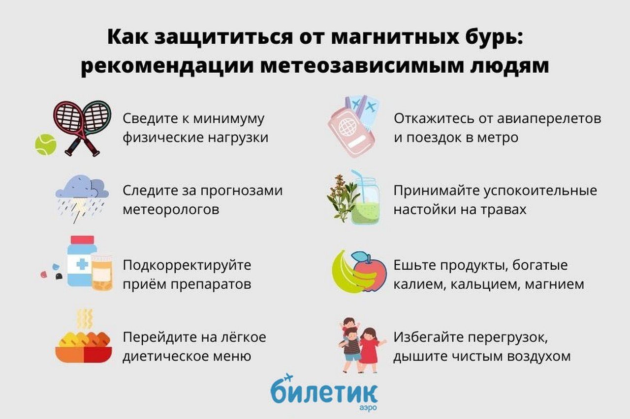 Лучшая стратегия поведения - не ждать ухудшения состояния, а заранее подготовить организм, если он реагирует на геомагнитные колебания и изменения атмосферного давления", - приводит