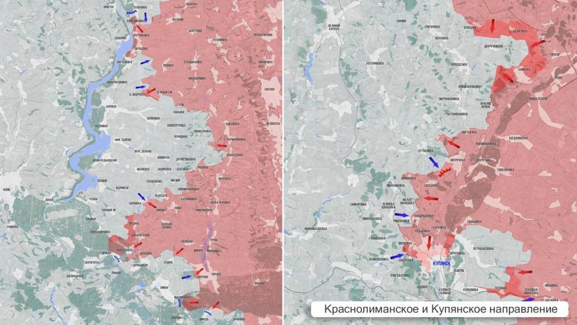 На Купянско-Лиманском направлении в Купянске сохраняются интенсивные боестолкновения в центральной части города. Российские войска имеют тактические успехи в районе Ямполя.