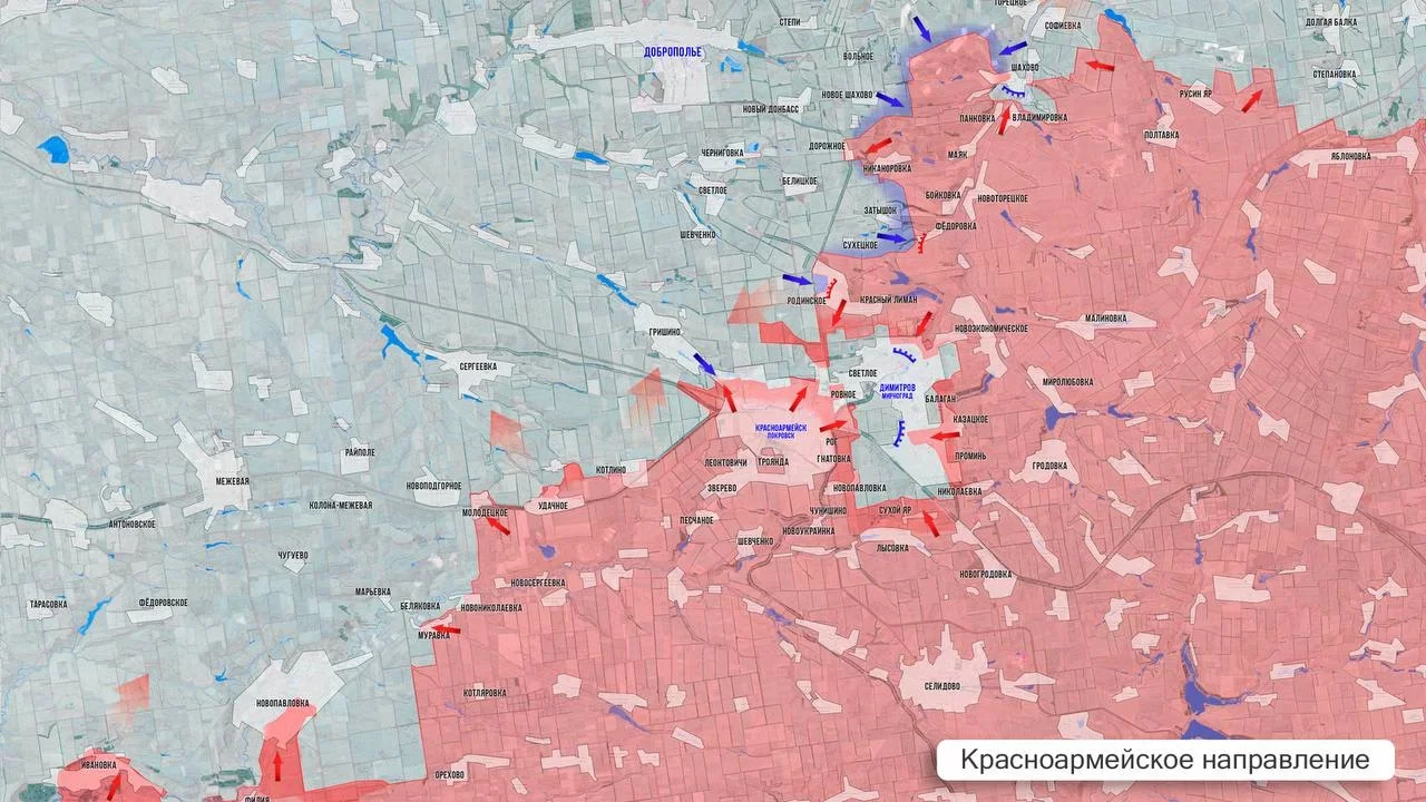 В самом Красноармейске продолжается методичная зачистка: бои идут в микрорайонах Центральный и Горняк, а также в западной промышленной зоне. В соседнем Димитрове наши штурмовики значительно продвинулись в южной части города и микрорайоне Западный.