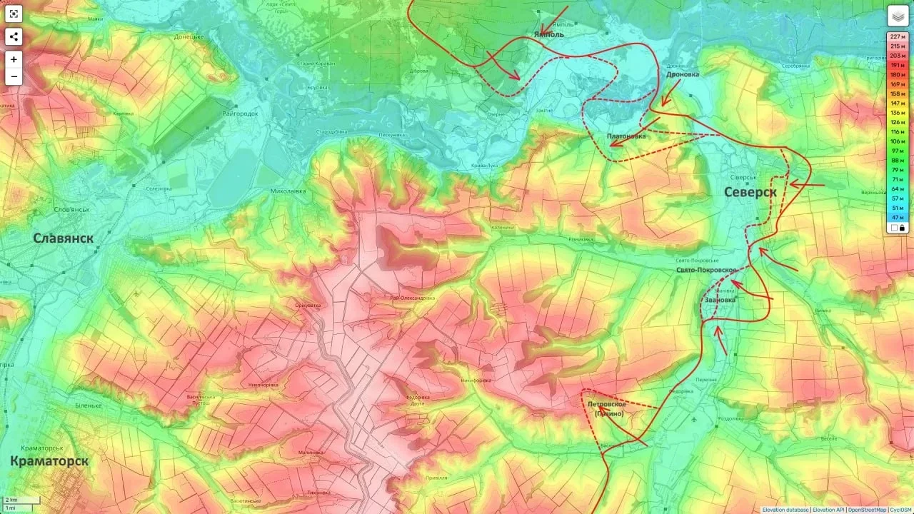 На Северском направлении обстановка складывается благоприятно. После освобождения Звановки и Ямполя российские части начали операцию по заходу в глубокий тыл северской группировки противника, создавая угрозу ее окружения. Занятие высот южнее Закотного позволяет взять под контроль ключевые линии логистики.