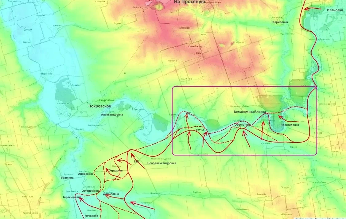 Успешно развивается наступление в районе Ивановки и Новопавловки. ВС РФ расширяют плацдарм на западном берегу реки Соленая. Следующей стратегической целью на этом участке, вероятно, станет Межевая - важный логистический узел уже в Днепропетровской области.