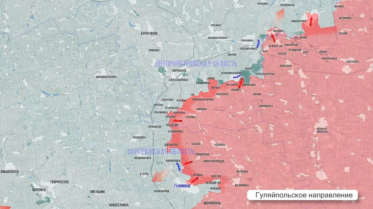 Этот успех позволил начать операцию по зачистке так называемого "кармана" между Марфополем и Затишьем, расположенного к востоку от Гуляйполя. По выявленным позициям ВСУ в городской черте Гуляйполя активно работает российская авиация, применяя ФАБы с УМПК, а также тяжелая артиллерия.