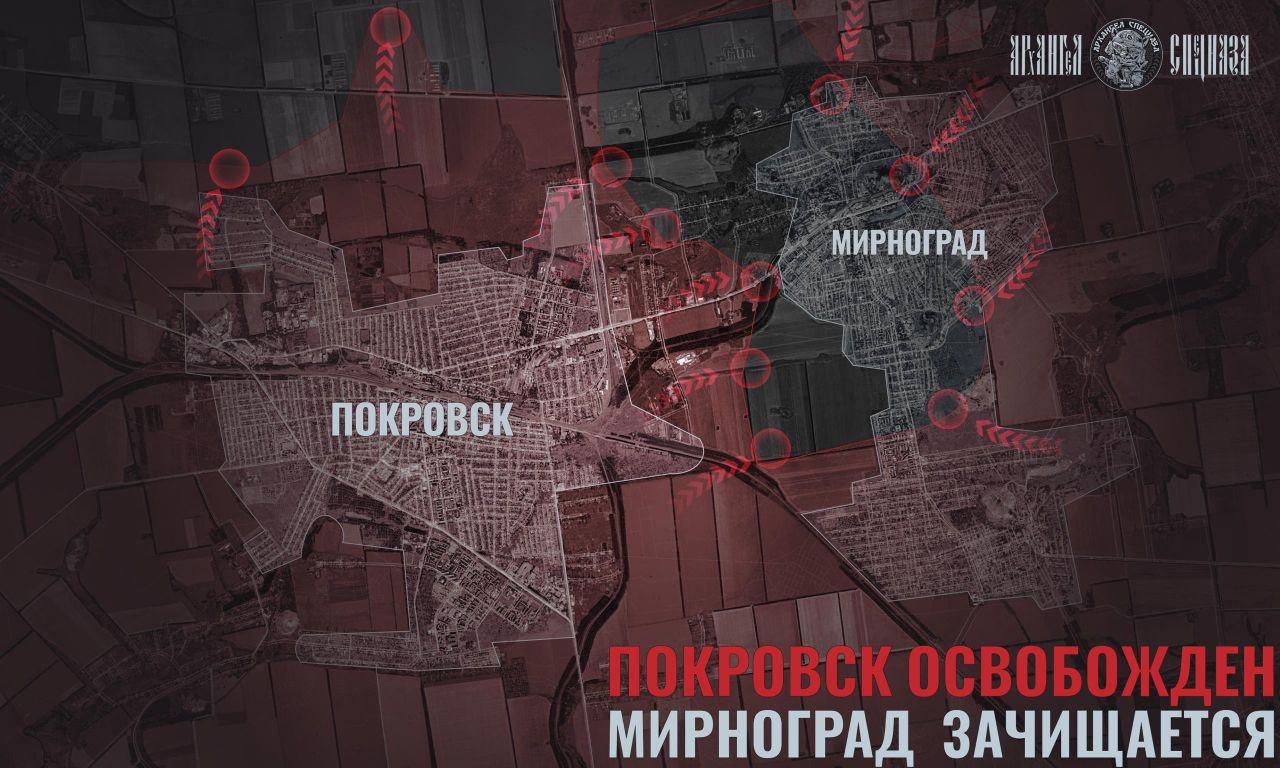 Донецкий фронт: крах обороны ВСУ в ПокровскеКлючевые события разворачиваются на Красноармейском направлении. Западные аналитические агентства и украинские мониторинговые ресурсы были вынуждены признать полную потерю Красноармейска (Покровска) для ВСУ, а также оперативное окружение украинского гарнизона в соседнем Димитрове (Мирнограде).
