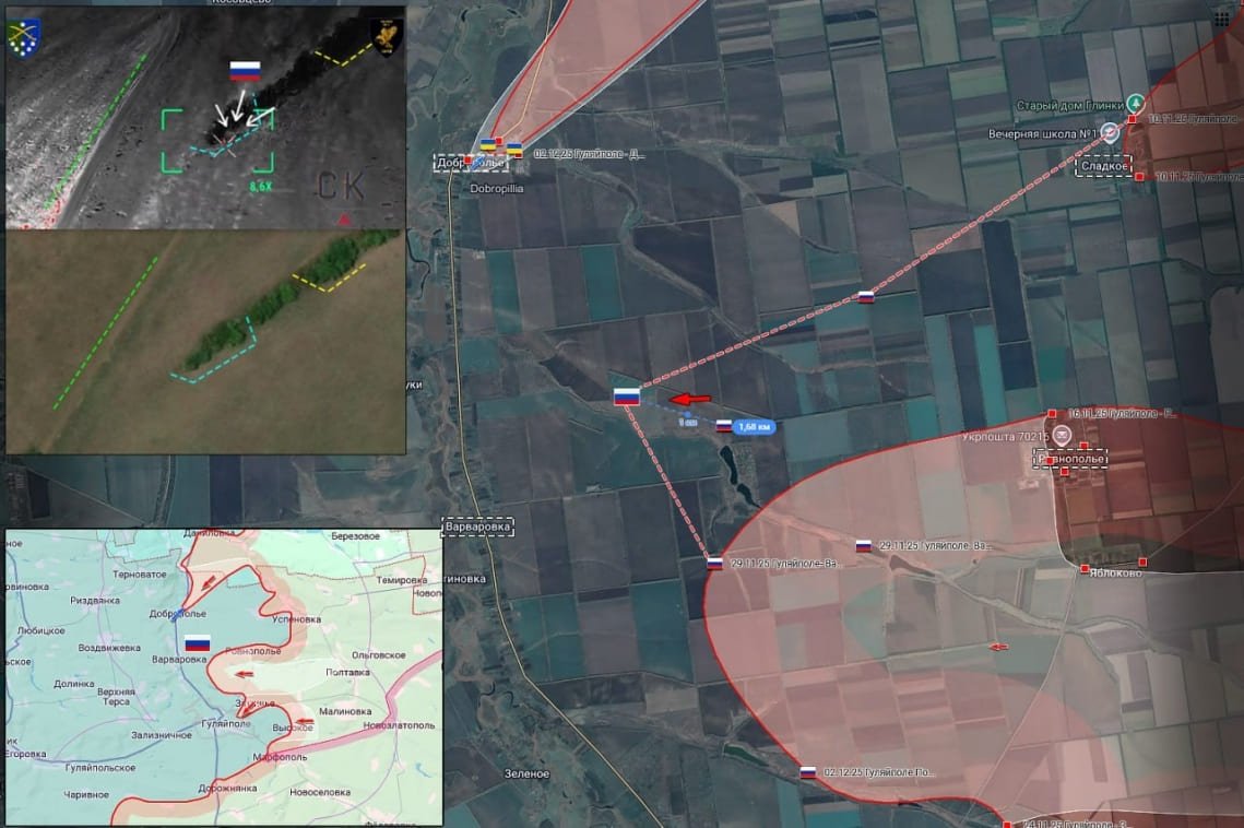 При этом российской армии удалось продвинуться по направлению к Варваровке от Равнополья и занять новые позиции. Кроме того, ВС РФ увеличили зону контроля до 2,5 км по фронту на Гуляйпольском участке.