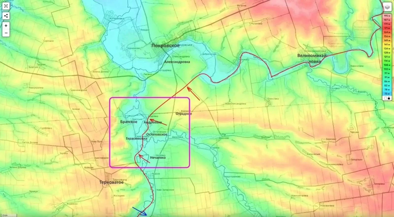 Особое внимание военкор уделяет тактической важности высот у Малиновки, расположенной северо-западнее Привольного. По его мнению, занятие этого района даст российским войскам господствующие высоты, что откроет возможность для "полномасштабного воздушного наступления на логистику Краматорской группировки противника".