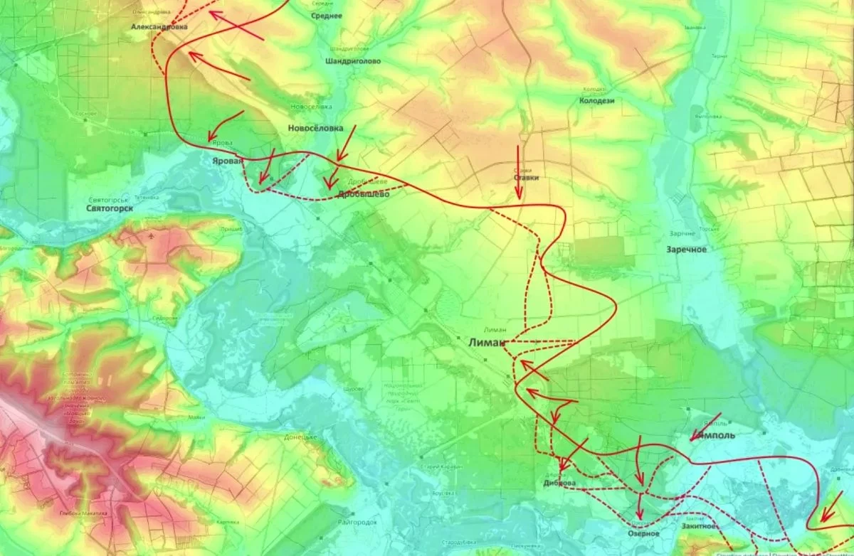 На Лиманском направлении украинские войска оказывают ожесточённое сопротивление в районе Дибровы. Есть тактические успехи у Дробышево и Яровой (бои за Яровую еще не окончены). Российские войска готовятся к штурму Святогорска.