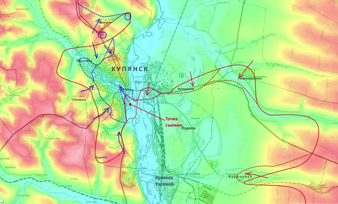 По оперативным данным, российские войска продолжают штурм, вклинившись в северо-западные и юго-западные окраины, и стремятся пробиться к центру. ВСУ, подтянув резервы, пытаются контратаковать, чтобы срезать опасный для них выступ в районе Радьковки. Судьба Купянска может решиться в ближайшие одну-две недели. Удержание плацдарма и отражение контратак станет для ВСУ поражением, но битва здесь идет крайне тяжелая.