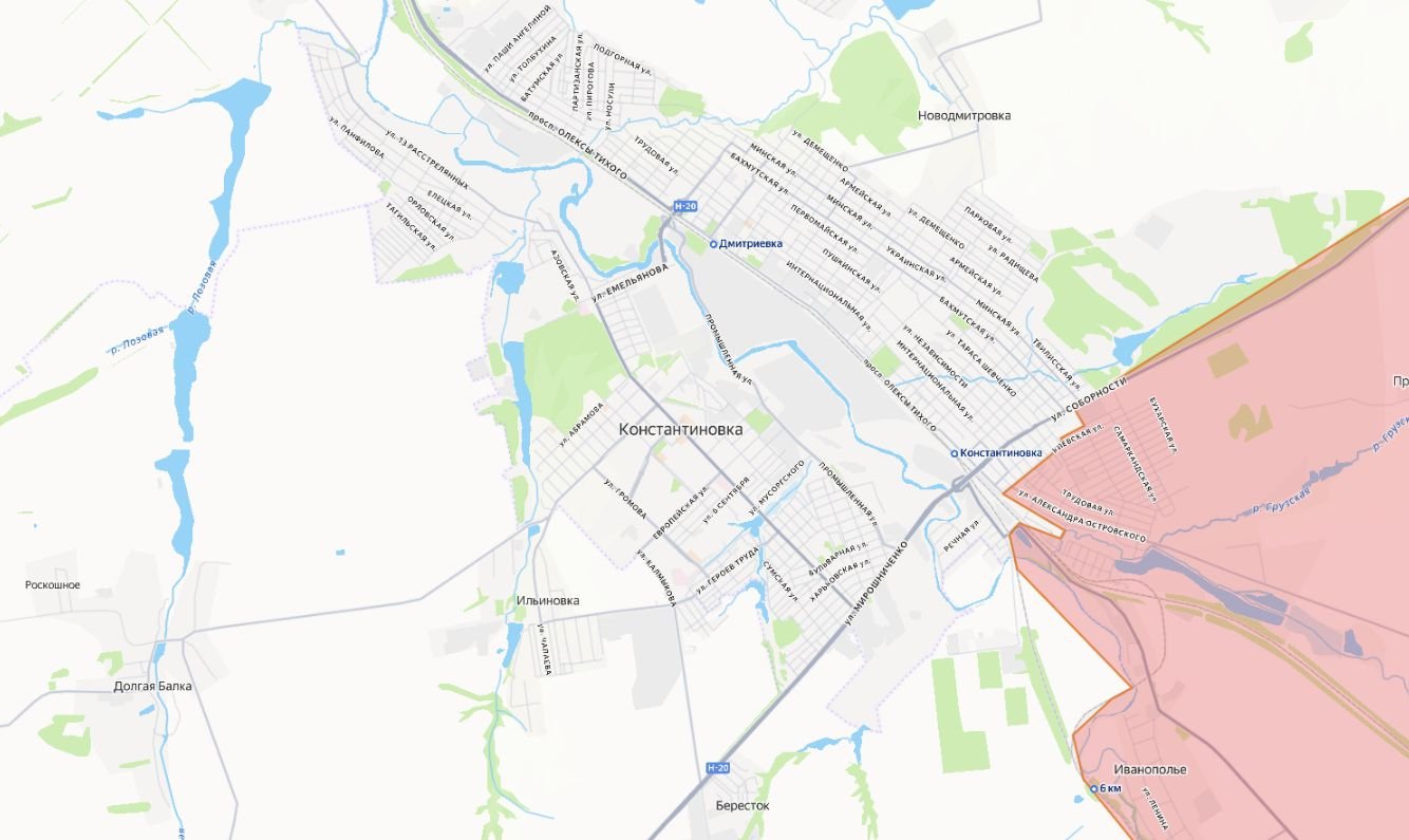 На Константиновском участке армия России наступает, чтобы охватить Константиновку с северо-запада через Степановку, Николайполье и Алексеево-Дружковку. С противоположной стороны наши войска бьются за Веролюбовку, противник удерживает там часть позиций. В южной части Константиновки продолжаются бои.