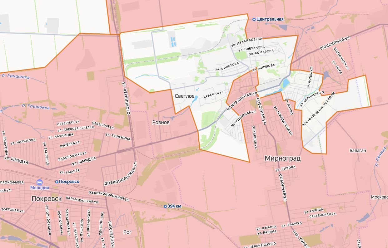 На Красноармейском направлении ВС РФ продолжают продвигаться от Удачного и Котлино в сторону Сергеевки. Наши бойцы бьются за Гришино, почти половина села под нашим контролем. С мест сообщают, что ВС РФ после ожесточенного сражения удалось выбить противника из Родинского, после чего они также начали продвижение к Гришино. В Димитрове остаётся очаговое сопротивление противника, идёт зачистка остатков города. Наши бойцы взломали оборону противника в Софиевке и продолжают наступление в Торецком.