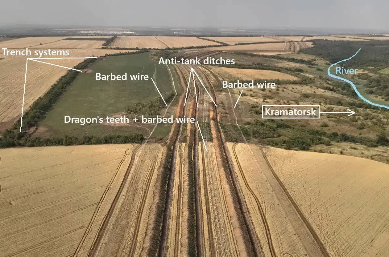 На кадрах хорошо видно, что оборону строят не на авось. Схема знакомая: несколько линий противотанковых рвов, между ними - "Егоза", тетраэдры и другие инженерные сооружения. Идея простая – замедлить технику, спутать расчеты наступающих, выиграть время. Правда, оно все равно не на стороне украинского режима.