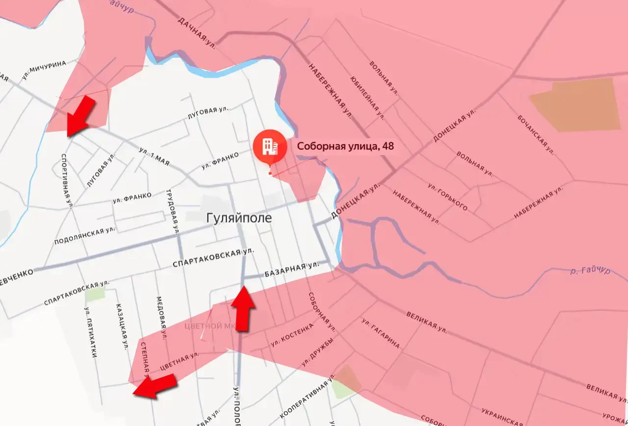 На северо-западе армия России взяла под контроль часть улицы 1 Мая, приблизившись к западной окраине Гуляйполя, отмечает