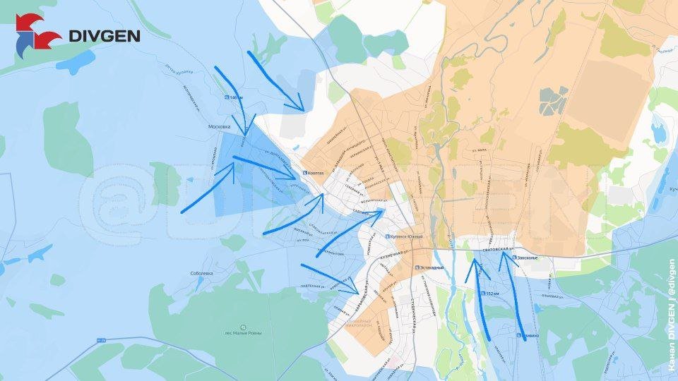 Сообщается, что Генштаб ВСУ перебросил под Купянск существенные резервы и задействует их в наступательных действиях. Украинские ресурсы прямо увязывают происходящее с политическими амбициями Зеленского, указывая, что штурмы могут продолжаться и дальше, даже если полного контроля над городом добиться не удастся. При этом не исключается, что о "контроле" над Купянском могут объявить и без фактического изменения линии боевого соприкосновения.