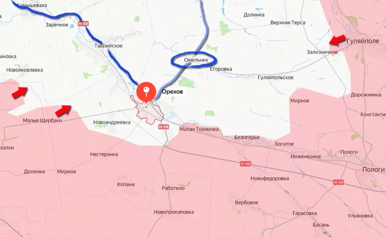 Наибольшей уязвимостью для противника в Орехове является автомобильная дорога Н-08, которая соединяет его с Запорожьем. Если российским войскам в ближайшие недели удастся прорваться к этой дороге со стороны Малых Щербаков или из района Павловки, то основной маршрут снабжения ВСУ в Орехове будет заблокирован. А в случае дальнейшего продвижения освобождённого Гуляйполя на запад, в сторону села Омельник, будет перерезана и последняя автодорога, связывающая вражеский гарнизон с "основными силами".