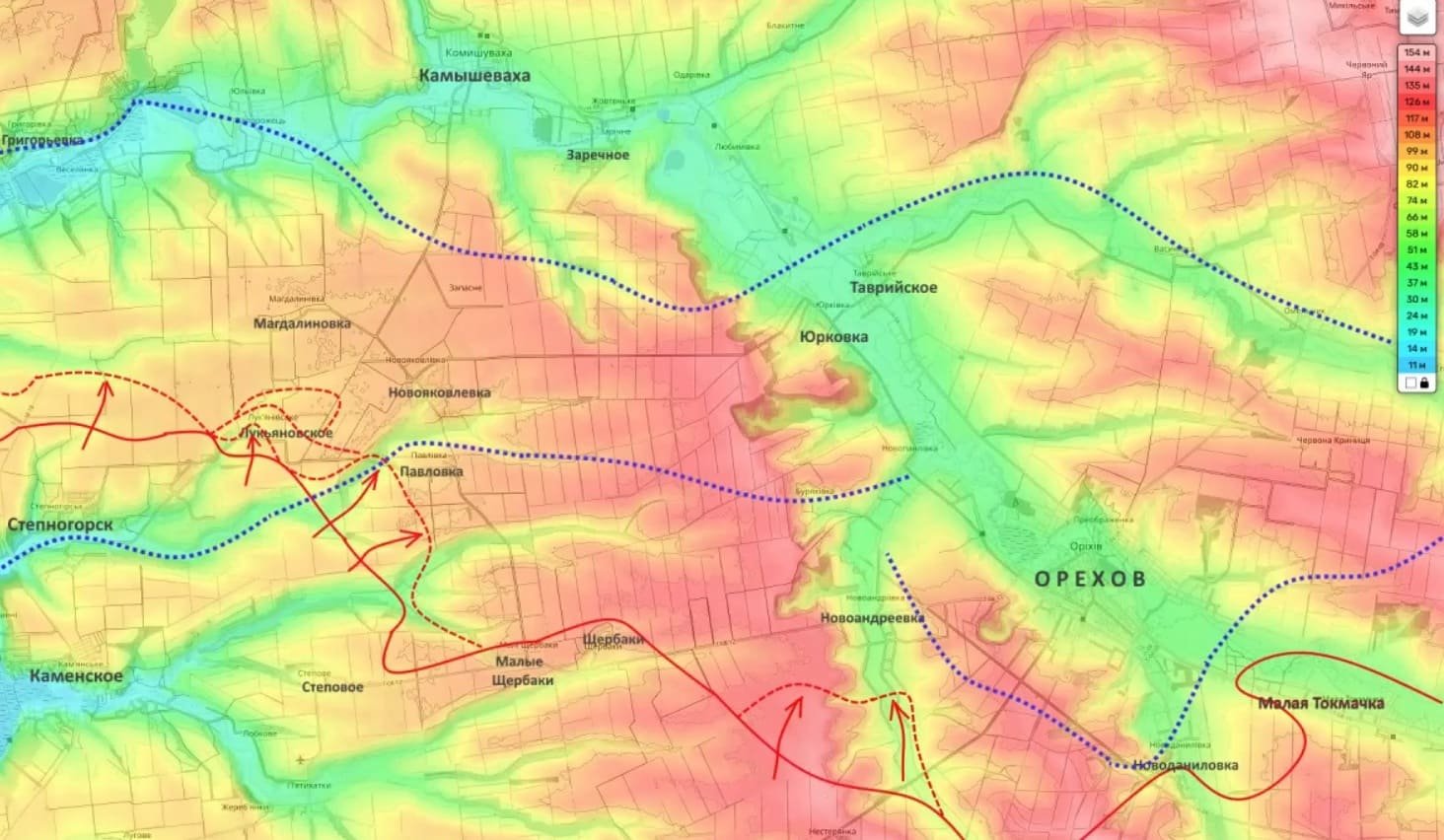 По информации блогера, российские подразделения, продвигающиеся в направлении Орехова, ведут атаки на позиции противника в районе села Павловка и одновременно приближаются к Новояковлевке. Также, как сообщил Подоляка, под контроль бойцов группировки "Днепр" перешло село Лукьяновское, а освобождение Приморского находится на завершающей стадии. По его оценке, такие действия позволяют российским войскам вклиниваться в оборону противника и обходить ореховскую группировку ВСУ с флангов.