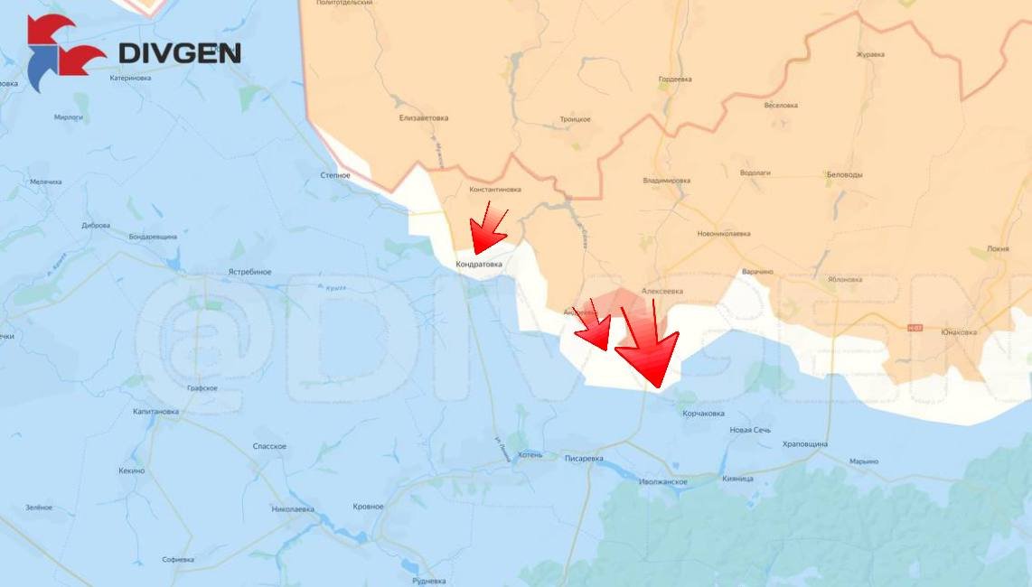 Наши подразделения продолжают расширять плацдарм. Зафиксировано продвижение на 500 метров в направлении Кондратовки, идут бои за Андреевку.