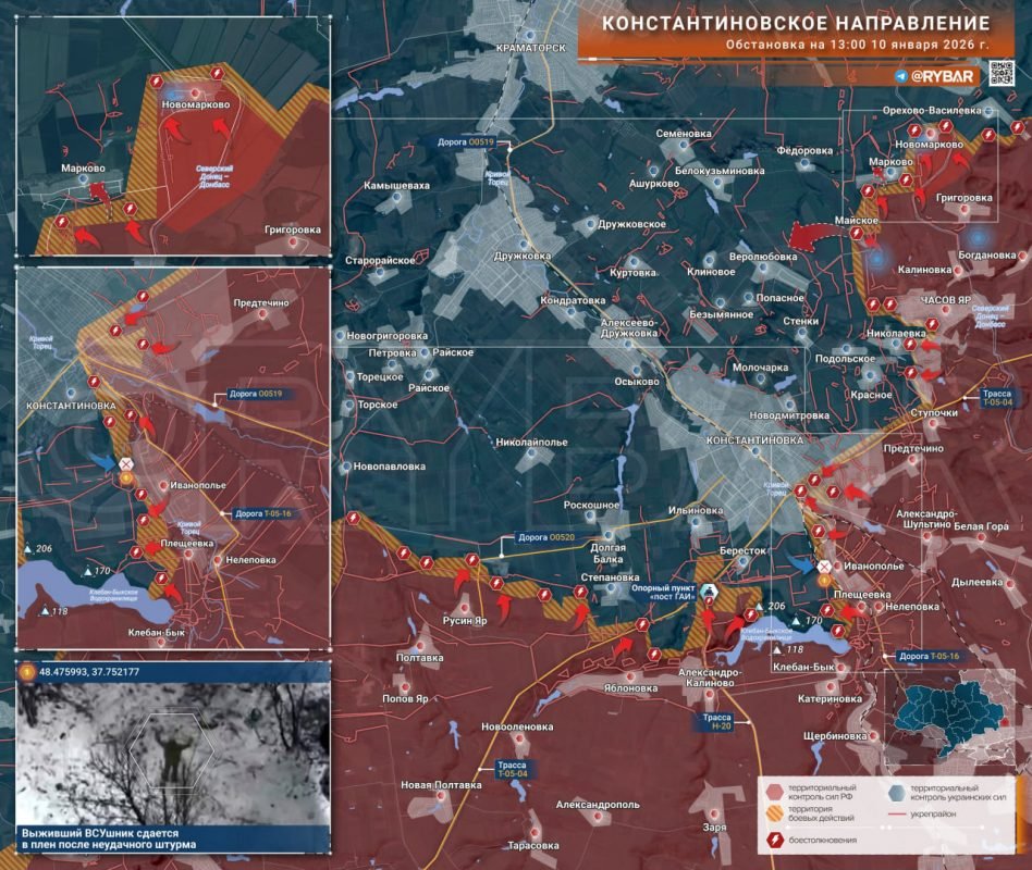 Южнее Константиновки российские подразделения успешно отразили попытку контратаки у Иванополья. По данным "Рыбаря", штурмовая группа украинских формирований была уничтожена, один выживший взят в плен.В целом на Константиновском направлении динамика остаётся положительной. Подразделения, действующие со стороны Дзержинска, ликвидировали "полукотлы", оставшиеся от предыдущего командования, и подготовили почву для полноценного штурма Константиновки, который может состояться в ближайшее время.