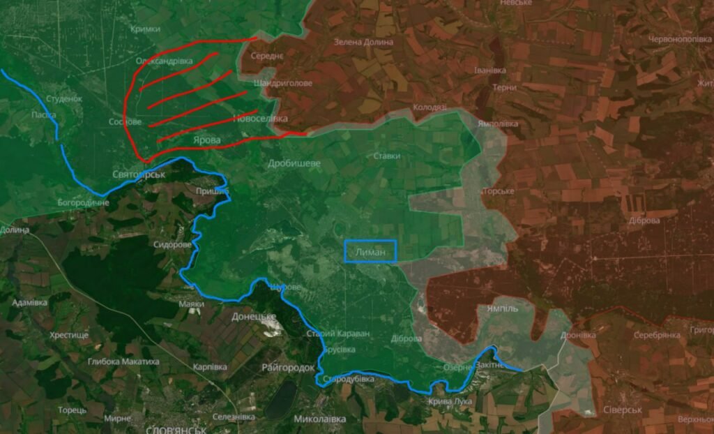 На Краснолиманском участке активные боевые действия идут на севере от Красного Лимана. Гвардейцы наступают на восточной окраине Дробышево - ВСУ противодействуют огнём из Пришиба По сообщениям с мест, полностью зачищена Новосёловка и лесополка южнее. Наши закрепились в Яровой, сражаются в районе высохшего пуда. Продвигаются вдоль Северского Донца в Святогорске и к Татьяновке, а также создают тактический кармана вокруг города, нависая с севера, из района ж/д станции Сосновое. Расширена подконтрольная территория в районе дороги на Александровку. ВС РФ значительно продвинулись на северо-западе от Коровьего Яра по направлению к Волчьему Яру.