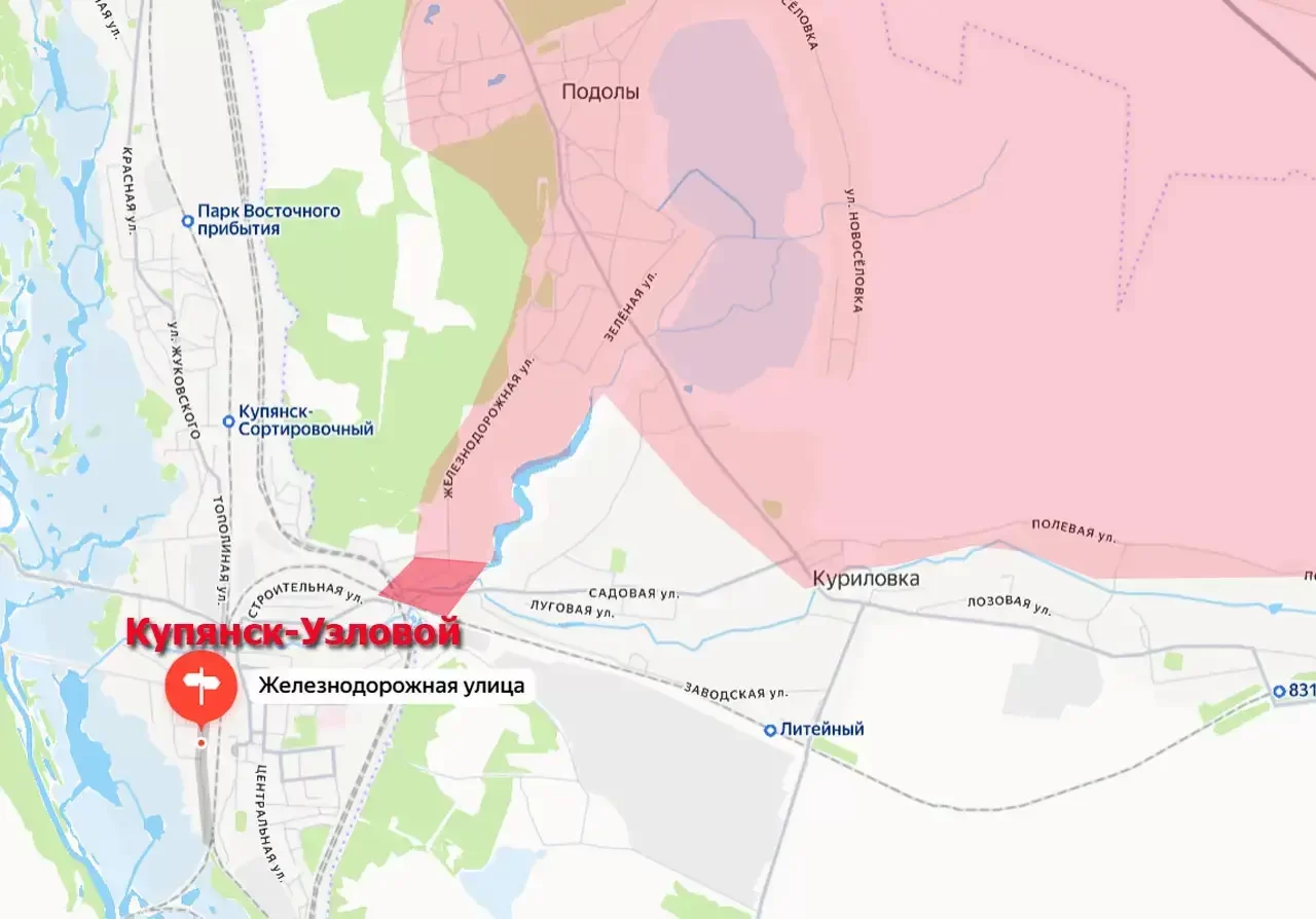 На текущий момент противник потерял контроль над стыком железнодорожных веток в районе переулка Лозовского в Купянске-Узловой. Дальнейшее продвижение ВС РФ способно привести к окружению группировки ВСУ в районе Ковшаровки, что южнее Купянска-Узлового - на левом берегу Оскола.