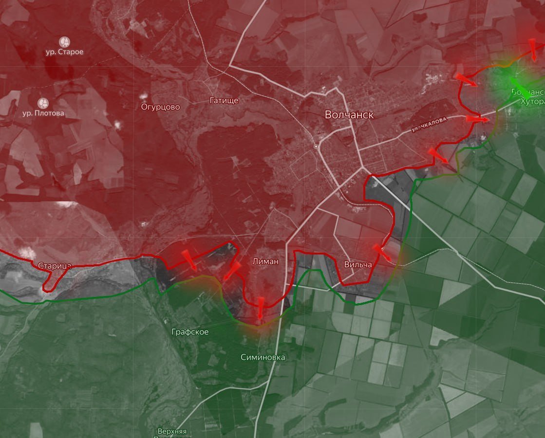 На Харьковском направлении ВС РФ расширяют зону контроля в лесах у Старицы. В районе Лимана и Прилипки наши войска вышли к окраинам Графского и пробиваются к Симиновке. Есть также продвижение по полям южнее Вильчи. В Волчанских Хуторах противник оказывает ожесточённое сопротивление, но тактические успехи есть и там, уточняет Олег Царёв в своём