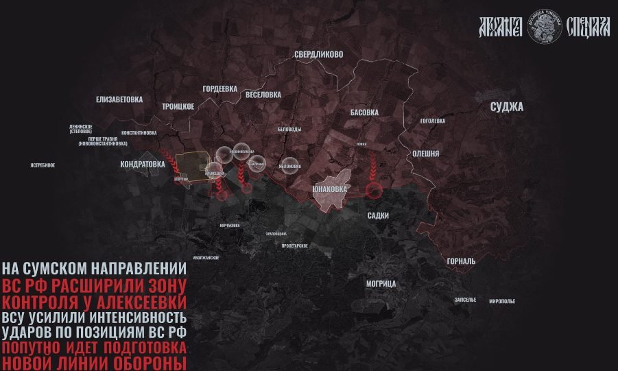 В Сумском приграничье высокий темп боёв удерживается в районе Андреевки и Алексеевки. Обе стороны сильно нарастили использование дронов. Работают артиллерия, миномёты, но на земле движения практически нет.