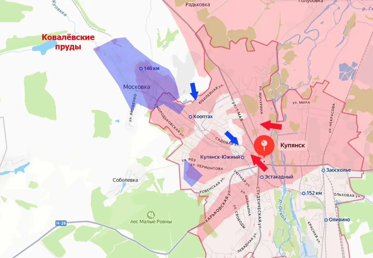 Военкоры прогнозируют возможность образования сразу двух "котлов" - большого (между Купянском и Подолами) и малого (между Редьковкой и Московкой). Инициатива на данном участке фронта полностью перешла к российской армии.