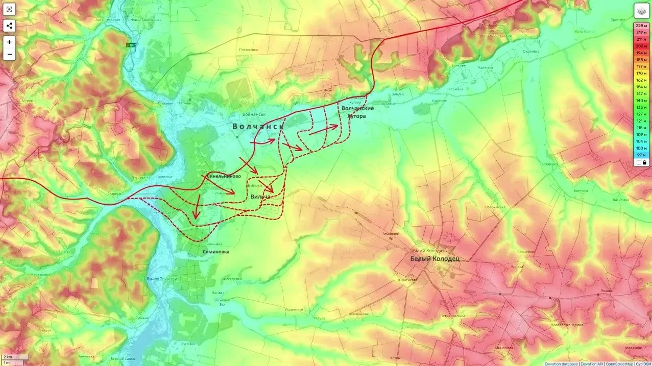 На Волчанском направлении Волчанские Хутора по большей части перешли под контроль российской армии. Это обеспечивает фланг для дальнейшего наступления на Белый Колодезь.