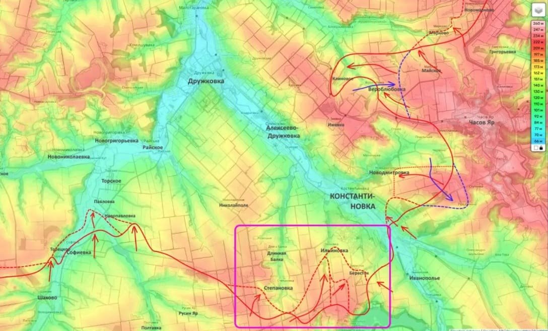 На этот час противник сохраняет присутствие в северной и западных частях села, стараясь не допустить прорыва российских штурмовиков в Константиновку с юга.