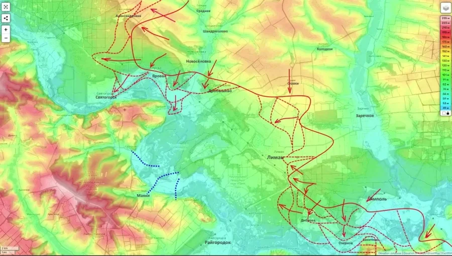 На Краматорско-Славянском направлении обозреватель говорит о признаках начала крупной операции. Сообщается об освобождении Миньковки, прорыве в районе Никифоровки через Бондарное и занятии господствующих высот севернее Закотного. Контроль над этими точками, по его оценке, создает условия для охвата Рай-Александровки и формирования плацдарма на водораздельных высотах восточнее Славянска и Краматорска.