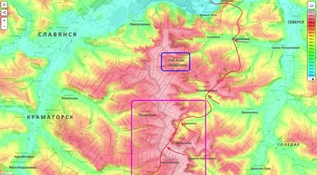 Параллельно продолжаются бои западнее Рай-Александровки, где действуют подразделения 3-й армии и Добровольческого корпуса. В числе ключевых населённых пунктов называется Малиновка, продвижение к которой сокращает расстояние до Краматорска.