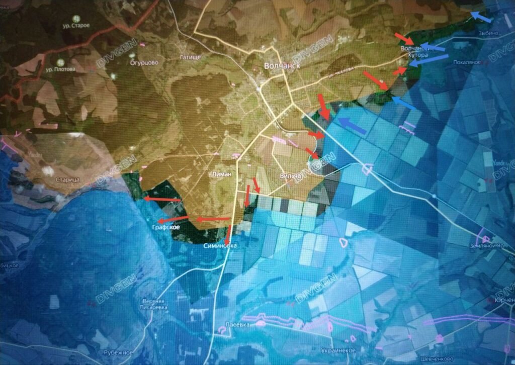 На Харьковском фронте продолжаются бои южнее Вильчи и на окраинах Графского, где наши войска смогли закрепиться на северных окраинах. Также идут бои в районе Симиновки. Накануне ВС РФ открыли ещё один приграничный плацдарм и взяли под контроль с. Дегтярное, что в 30 км к северо-востоку от Волчанских Хуторов, и ведут бои за 2 соседних села: Круглое и Нестерное. Северяне продолжают продвижение в населенных пунктах возле Волчанска. По тыловым районам и логистическим узлам ВСУ интенсивно работает российская авиация. Противник вынужден отступать с занимаемых позиций под натиском штурмовиков Севера.