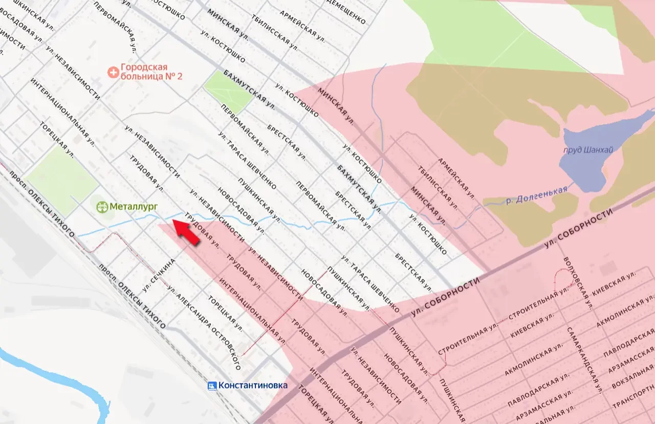 Поступают сведения о том, что ВС РФ взяли под контроль новый участок территории Константиновки, выйдя к реке Долгенькая у стадиона "Металлург".