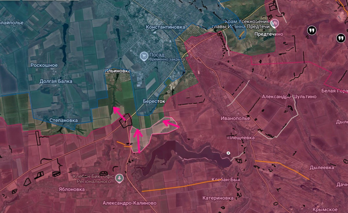 Штурмовые группы продвигаются по улицам выше ж/д вокзала. Ожесточённые бои идут на подступах к Ильиновке и Берестку.