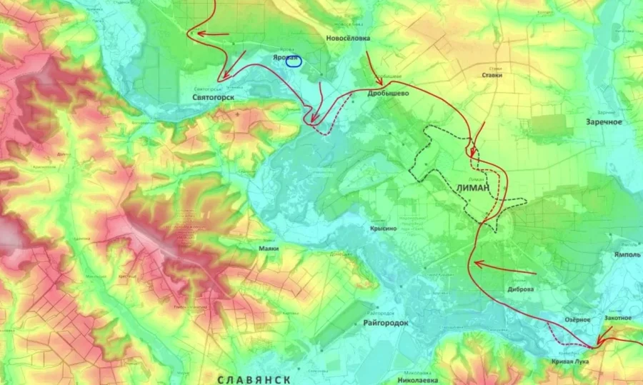 Особенно сложная ситуация складывается под Лиманом. По данным Подоляки, бои уже идут в черте города, в районе железнодорожного вокзала. Российские части продвигаются со стороны Новосёловки, отрезая пути снабжения. Украинские источники называют положение гарнизона критическим. Дополнительное значение имеет выход в районе Озёрного на другой берег Северского Донца к Кривой Луке, что прикрывает фланг наступающей группировки.