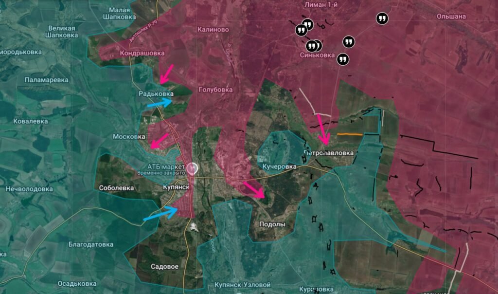 В Купянске продолжаются тяжёлые бои за контроль над городской застройкой. Российские подразделения БПЛА активно работают по логистике и технике ВСУ. Бои идут в районах Песчаного и Куриловки на восточном берегу Оскола. На плацдарме у Двуречанского заняты несколько лесополос на подступах к Колодезному, а в районах Хатнего и Амбарного есть продвижение в сторону Ольховатки и Обуховки.