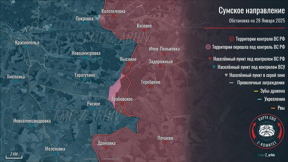 Увеличена зона тактического контроля с юго-восточной стороны от Марково, что позволяет наращивать давление на фланги агломерации. Линия фронта подтянута от трассы М-03 к Миньковке, вынуждая ВСУ обороняться в низинах под постоянным огнем БпЛА. Интенсивность боев на окраинах Майского и Веролюбовки остается предельно высокой.