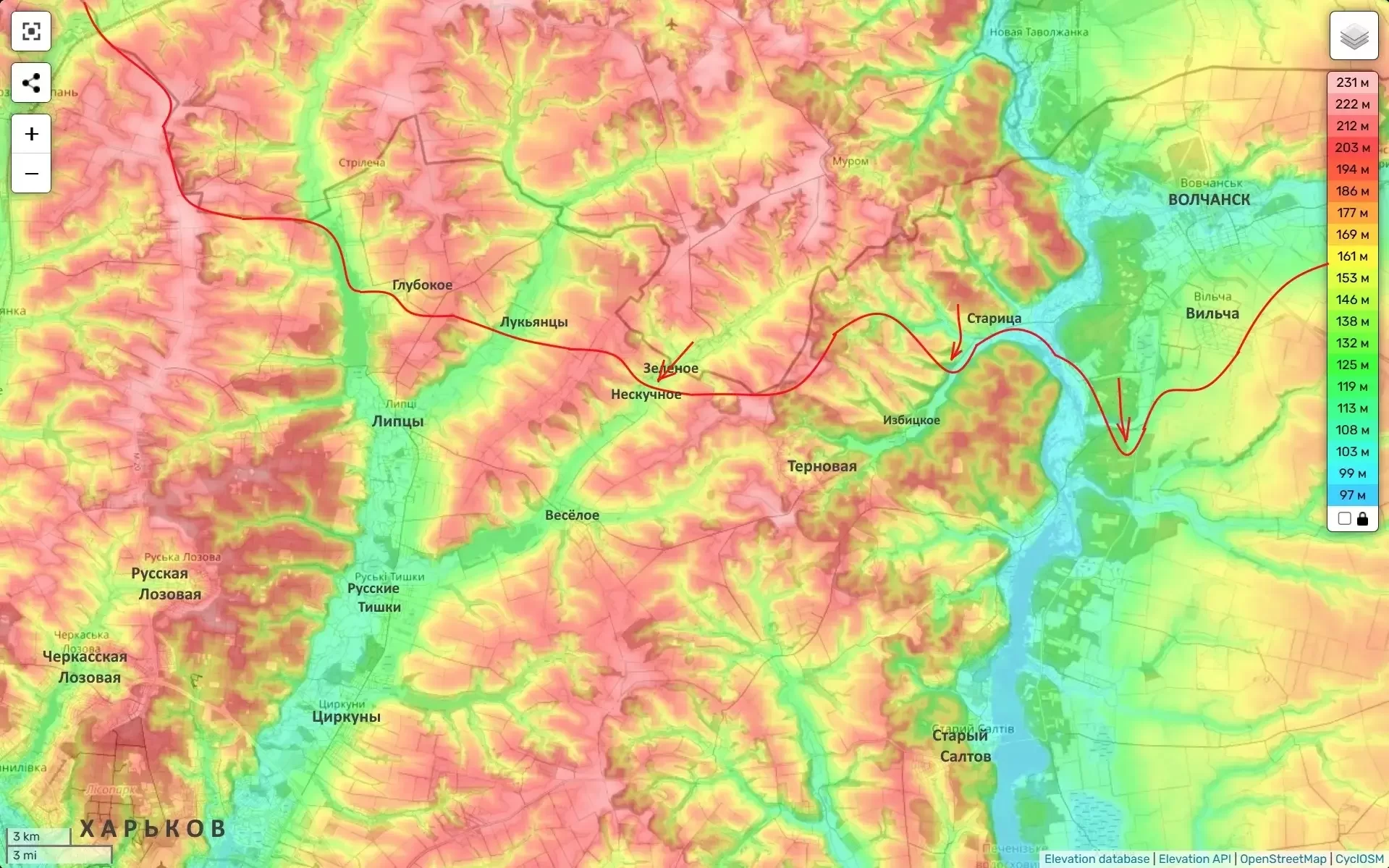 "Судя по поступающей информации, наши части освободили приграничное село Зеленое. Движение, с учетом обстановки рядом, очень примечательное. Ключевыми логистическими узлами здесь являются села Терновая (до нее от наших передовых позиций 1 км) и Веселое (до него около 3-4 км). Заняв их, можно сильно осложнить жизнь для противника на Харьковском направлении", - сообщил блогер.