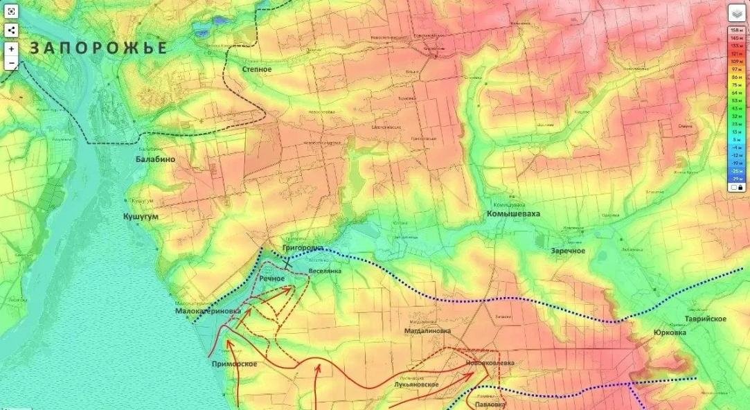 Блогер обратил внимание, что ключевым фактором может стать выход российских сил к реке Верхняя Терса. По его данным, украинская сторона в спешке возводит там новую линию обороны, однако в случае взятия Любицкого и успешного форсирования реки положение ореховской группировки ВСУ окажется критическим. Ситуация, по его оценке, еще более осложнится для противника, если подразделения группировки "Днепр" сумеют выйти в район населенного пункта Юрковка. Подоляка назвал происходящее очень важным и системным успехом.