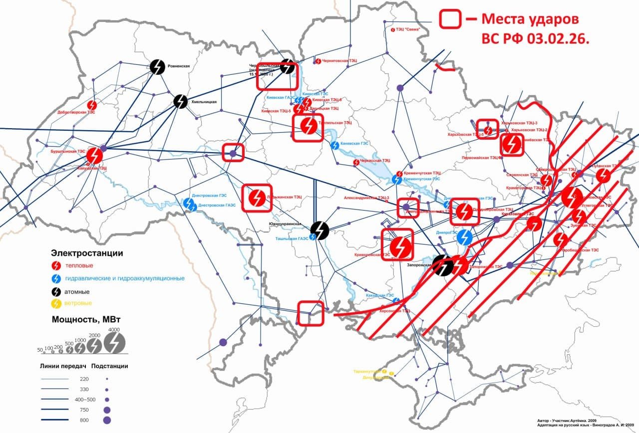 В результате во многих районах пропал свет и тепло. В районе Харькова был удар по крупнейшей ТЭЦ-5, которая отапливает значительную часть мегаполиса. А также по Змиевской ТЭС.